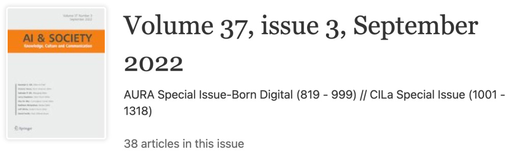 We are very pleased to be part of the AURA special issue in AI & Society 37,3. The special issue explores how modern data analytics affect archival practice, through conceptual and applied articles as well as elaborated case studies. Contributions consider a variety of issues, from new and exciting opportunities for exploration to continuing exclusion of communities, and provide food for thought for anyone interested in the future of history in a world increasingly captivated by AI.
