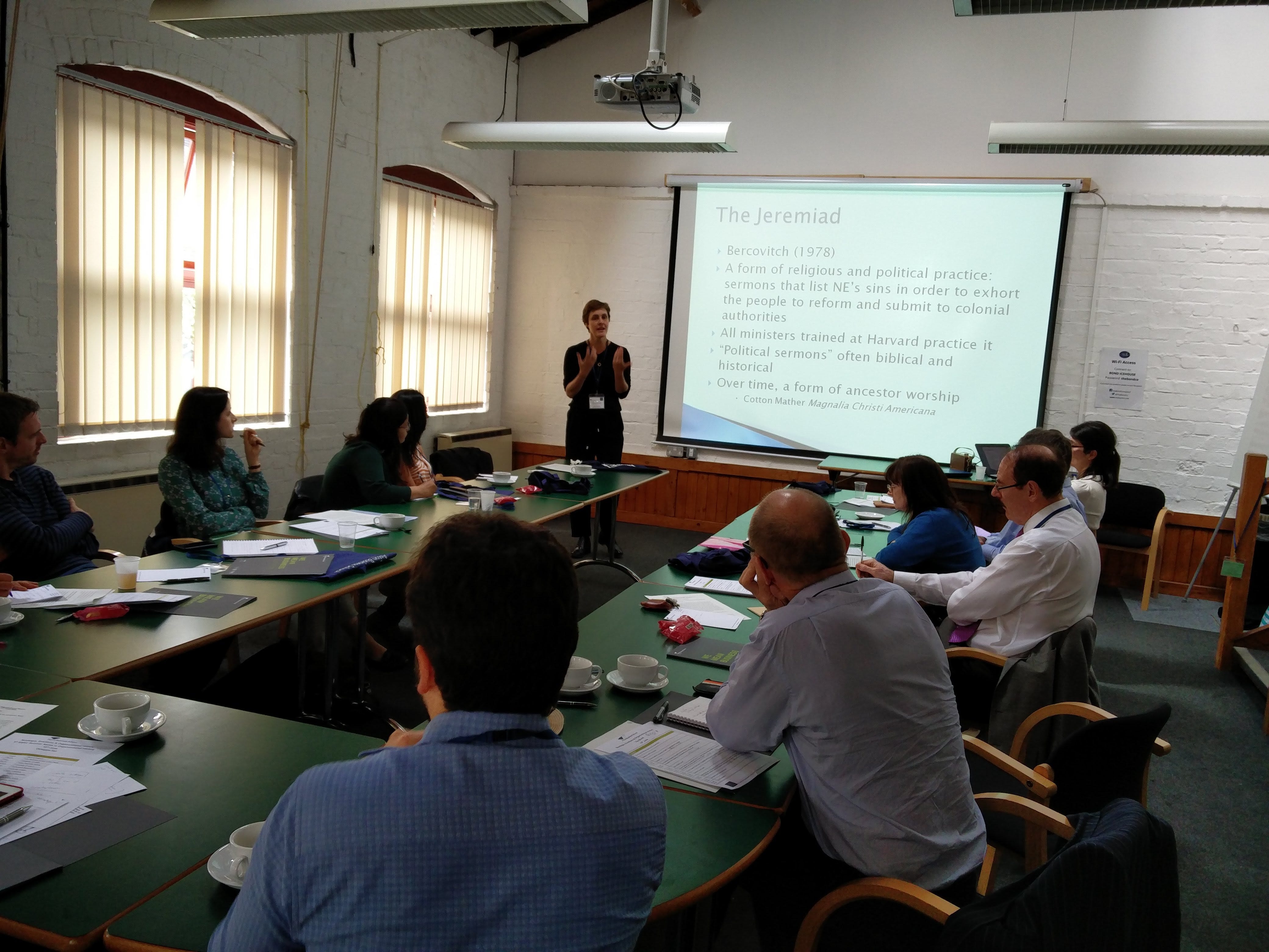 After lunch, Agnès Delahaye (Université Lumière Lyon II) started the afternoon session off with her presentation on usable pasts and the role nostalgia plays as a device for promoting an author's version of a given history. The research centred on the writings and historiography relating to the founding and development of New England. It is ultimately suggested that at times, history as a practice of caring about the truth, rather than a discourse, is idealistic.