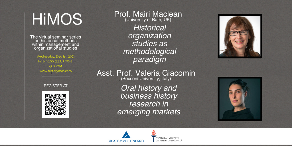 The HiMOS webinar series (www.historymos.com) aims to generate hands-on insights for those interested in applying historical methods within management and organization studies. Previous issues included keynote speakers such as Eero Vaara (Oxford Saïd Business School) and Ryan Raffaelli (Harvard Business School).