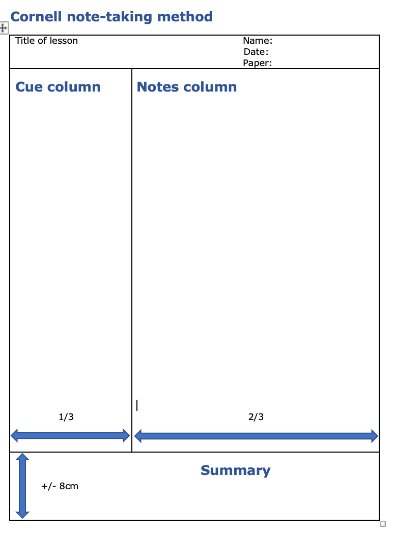 The rest of the blog looks at a range of note-taking techniques, including resources and templates for the well-known Cornell method, which uses three different sections: the main notes, the “cues”, and the summary.